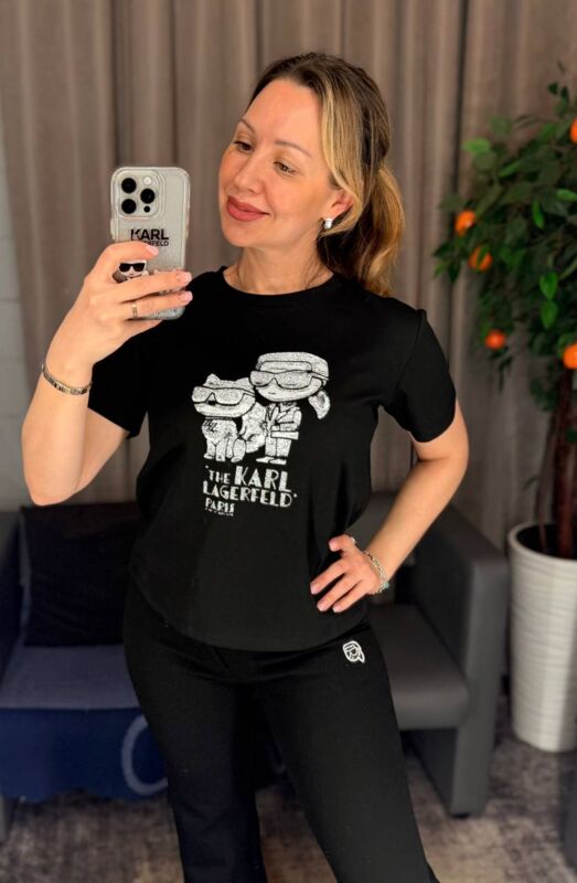 Karl Lagerfeld - Женская футболка с принтом в ретро стиле