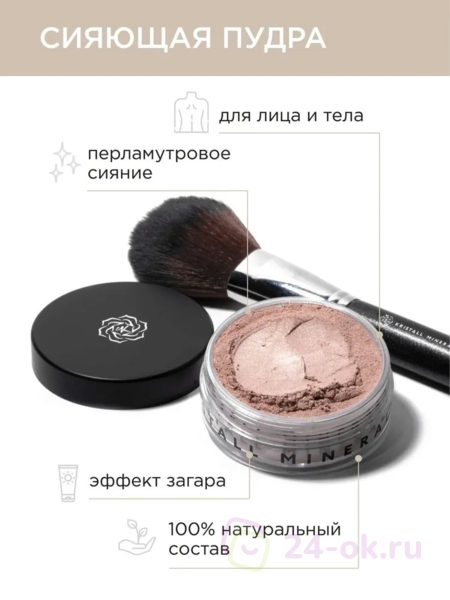 Бронзирующая пудра с сиянием — это первый продукт для тела в линейке Kristall Minerals. Бронзирует кожу и добавляет ей мягкого, деликатного свечения.