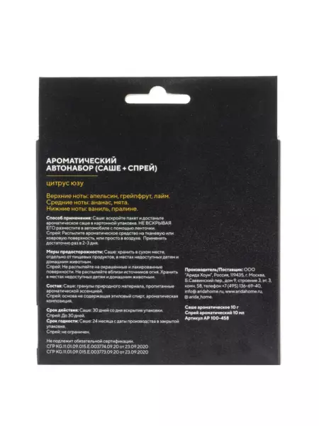 ARIDA HOME Автонабор ароматический Цитрус юзу