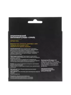 Упаковка: картонная коробка Срок действия: Саше: 30 дней с момента вскрытия упаковки Спрей: до 30 дней