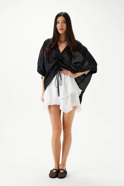 Состав: 70 хлопок 30 лен Описание: Юбка ассиметричного кроя выполнена из льняного полотна белого цвета. Характеристики: двуслойная, пояс на резинке, нижний слой ассиметричного кроя, низ изделия украшен хлопковым кружевом, верхний слой выполнен в виде треугольника , низ верхнего слоя украшен хлопковым кружевом. Длина по боковому шву 39 см.