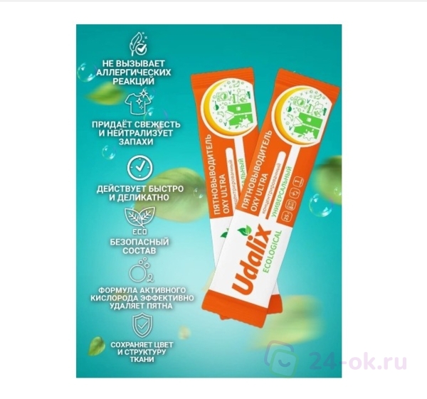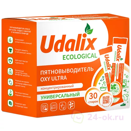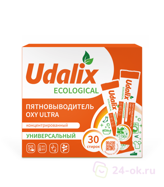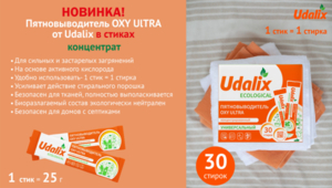 Udalix Пятновыводитель Oxy Ultra на основе активного кислорода (в стиках), гипоаллергенный, экологичный, 30 стиков