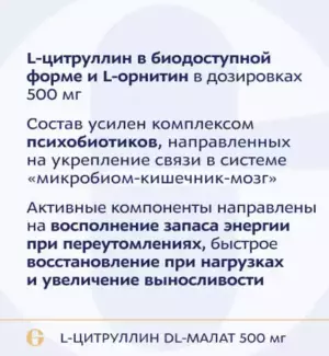 Уникальный комплекс L-цитруллина и L-орнитина с применением метода коррекции нервной системы через кишечный микробиом с помощью психобиотиков – продуктов биотехнологического происхождения.