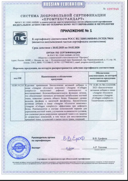 Гидролизованный коллаген связывает и хорошо удерживает влагу внутри кожи, обладает антиоксидантной активностью, способен увеличивать биодоступность и сохранность важнейшего структурного элемента – кальция.«Аминоцидин»