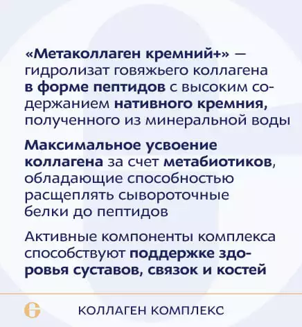 Метаколлаген обогащен кремнием. Кремний важен для оптимального синтеза собственного коллагена и активации гидроксилирующих ферментов, повышает прочность и эластичность кожи. Кремний необходим для формирования основного вещества кости и хряща, минерализации костной ткани (активизирует усвоение кальция и других минералов).