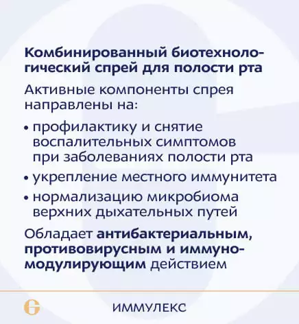 Комбинированное биотехнологическое средство для местного применения. Обеспечивает надёжную профилактику и быстрое снятие воспалительных симптомов при заболеваниях полости рта.