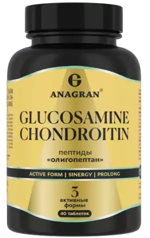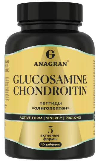 Хондропротекторный комплекс "Glucosamine chondroitin" с противовоспалительной активностью включает в себя оптимальные дозировки глюкозамина и хондроитина, а также продукт биотехнологий – «Олигопептан».