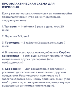 Если у вас нет острых симптомов и вы хотите пройти профилактический курс, ориентируйтесь на следующую схему: