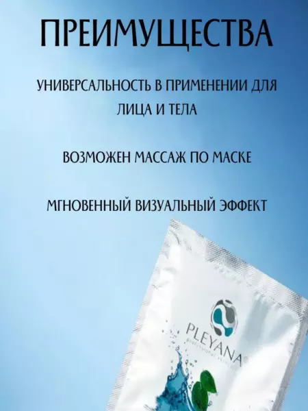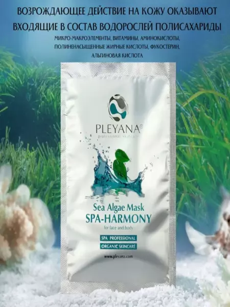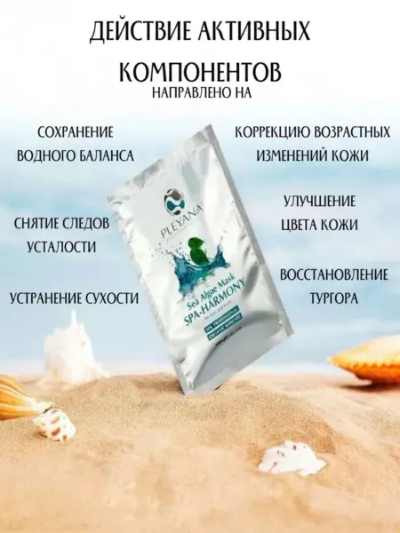 «Морская» маска активно увлажняет и смягчает кожу, делает ее нежной и бархатистой. Компоненты маски оказывают влагорегулирующее, омолаживающее и противовоспалительное действие, укрепляют и подтягивают кожу лица и тела.