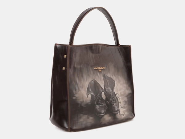 Коричневая кожаная сумка с росписью из натуральной кожи «W0027 Brown Ботиночки»