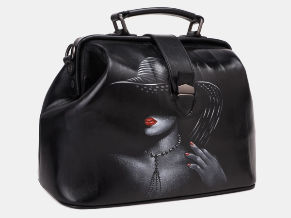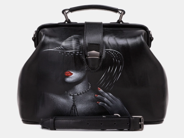 Черная кожаная сумка с росписью из натуральной кожи «W0023 Black Чарующая дама»