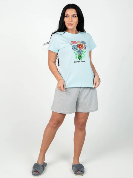 Пижама "Букетик" голубой с шортами