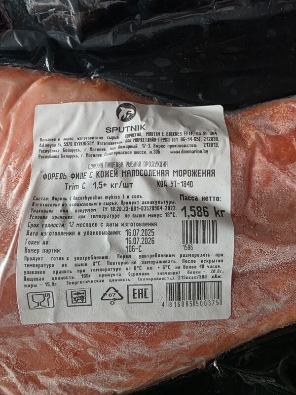 00333 Форель филе сл. соли, зам., (пласт) Беларусь. Пласт размером ~ 1.5+ кг/шт.