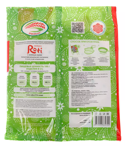 Лепешка Roti (90г*5шт) с зеленым луком ЗАМОРОЖЕННАЯ. Ожидаем ~ конец февраля
