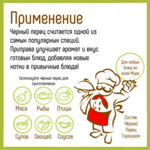 Отлично подходит данная специя для улучшения запаха и вкуса различных мясных и рыбных блюд, холодных закусок и салатов.