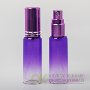 Фиолетовый флакон «Promo» 10мл, выполненный из цветного стекла с металлическим спреем в цвет флакона. Плавный градиент придает флакону презентабельный вид, что позволяет использовать его даже в сегменте премиум духов для женщин. Номинальная вместимость: 10мл; Полная вместимость (по горлышко): 12мл; Материал и цвет флакона: Стеклянный, фиолетовый; Размеры флакона: 80х20х20мм; Минимальный заказ: от 5шт; Вес: 13г; Спрей/Крышка: Металлический фиолетового цвета с крышкой