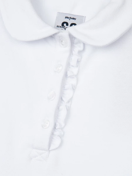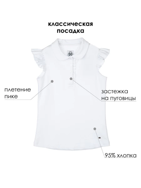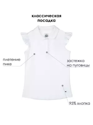 Школьное белое поло из пике - прекрасная альтернатива рубашке в школу. Поло прямого силуэта с рукавами-крылышками для школы всегда выглядит элегантно и по-взрослому. Минималистичный дизайн модели делает поло базовым элементом для комфортного повседневного гардероба девочки подростка. Высокое содержание хлопка 95%. Благодаря наличию эластана в составе ткани футболка для школы проще в уходе и отлично держит форму.
