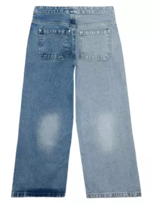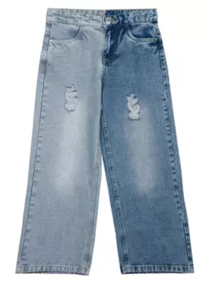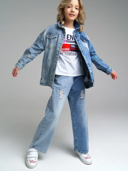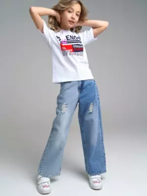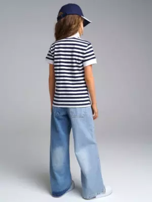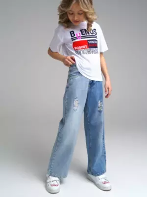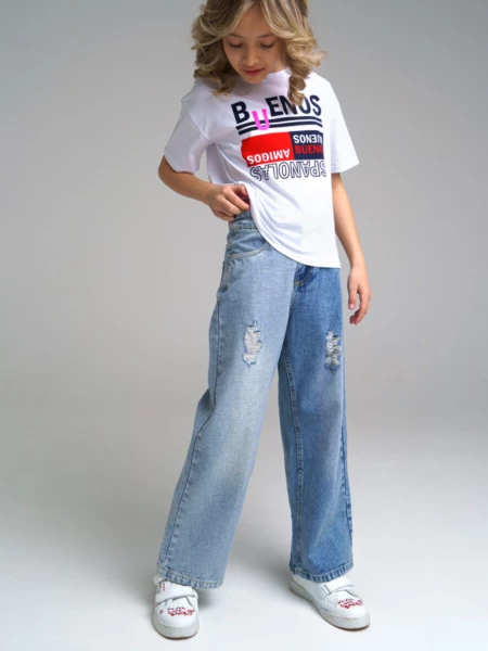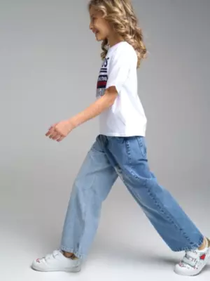 Джинсы-трубы. Модель свободного кроя с широкими штанинами. Застежка на молнию и пуговицу. Функциональные карманы.