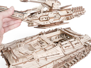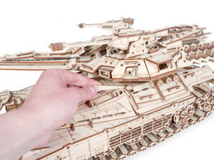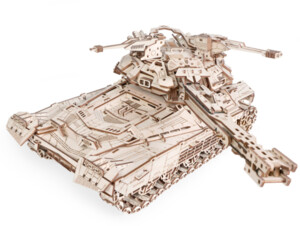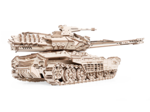 У собранной модели вращаются башня, пулемёты, колёса, гусеницы. Подвеска с амортизацией. Поднимается, фиксируется и опускается пушка. Открываются люки. Пушка заряжается и стреляет снарядами из фанеры. Дальность стрельбы до 10 м.