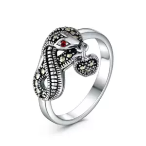 Кольцо из чернёного серебра с натуральным гранатом и марказитами - Змея с яблоком 925 пробы HR1446-MAC