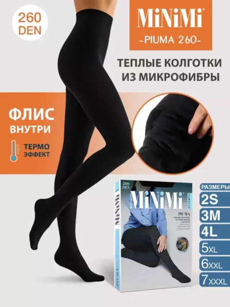 Очень плотные и теплые колготки, 260 ден, из микрофибры, однородные по всей длине, изнутри с мягкой ворсистой прослойкой