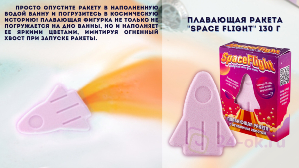 Шипучая соль для ванн с пеной и цветными вставками Плавающая ракета "Space Flight" 130 г