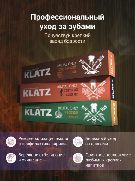 Благодаря качественному составу, современным технологиям и специальным рецептурам KLATZ гарантирует эффективную гигиену и бережный уход за полостью рта каждый день.