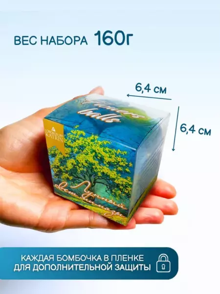 Погрузитесь в атмосферу волшебства и спокойствия с нашим набором бомбочек для ванны "Лунный свет мимозы". Этот изысканный набор из 8 шипучих бомбочек весом 20 г каждая превратит вашу ванну в настоящий оазис расслабления и гармонии. Преимущества нашего продукта: • Аромат мимозы: Каждая бомбочка наполняет вашу ванну нежным и освежающим ароматом мимозы, который помогает снять напряжение и создать атмосферу уюта. • Увлажнение и уход за кожей: Благодаря натуральным маслами и экстрактам, ваши кожа станет мягкой, гладкой и увлажненной, даря ей здоровый и сияющий вид. • Шипучие эффекты: Набор подарит вашей ванной комнате яркие цвета и удивительные шипучие эффекты, превращая рутинное принятие ванны в незабываемое приключение. • Идеальный подарок: Упаковка из 8 штук — это идеальный подарок для ваших близких на праздники, дни рождения или просто так, чтобы порадовать их. Идеально подходит для: • Релаксации после долгого дня • Создания романтической атмосферы • Подарков для женщин и любителей спа-процедур