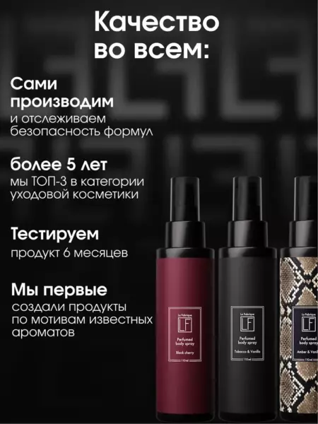 Спрей мист для тела La Fabrique — это прекрасный подарок для себя или близких, который подарит незабываемые ароматические впечатления.
