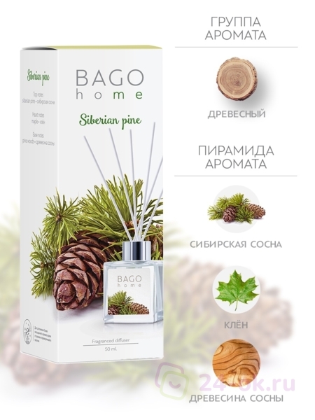 Сибирская сосна BAGO home ароматический диффузор 50 мл
