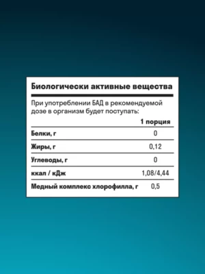 Действие хлорофилла основано на его способности усиливать процессы обновления и восстановления клеток организма. Главное действие хлорофилла заключается в его способности усиливать окислительный обмен, что помогает повысить уровень кислорода в крови. Это в свою очередь способствует более эффективной работы органов и систем организма, включая сердечно-сосудистую, дыхательную и пищеварительную системы. Кроме того, хлорофилл обладает мощными антиоксидантными свойствами, которые помогают бороться с вредными свободными радикалами и защищать клетки от окислительного стресса. Это способствует замедлению процессов старения, поддержанию здоровья кожи, а также защите органов от воздействия окружающей среды. Хлорофилл может оказывать благотворное влияние на работу кишечника, помогая улучшить процессы переваривания пищи и усвоения питательных веществ. Общее действие хлорофилла включает в себя поддержание общего тонуса и жизненной силы организма, повышение иммунитета, а также способность оказывать общеукрепляющее и оздоровительное воздействие на организм человека. столовая минеральная вода, медный комплекс хлорофилла, регулятор кислотности: лимонная кислота, эфирное масло мята, бензоат натрия, сорбат калия