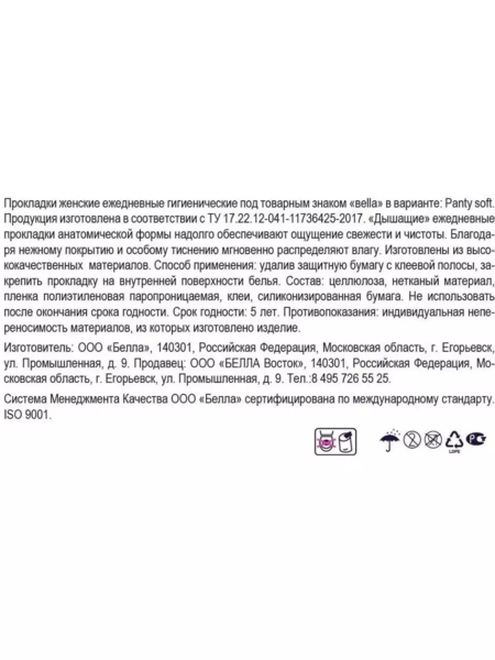 Прокладки женские гигиенические ежедневные "bella PANTY" Panty Soft, 60 шт./уп.