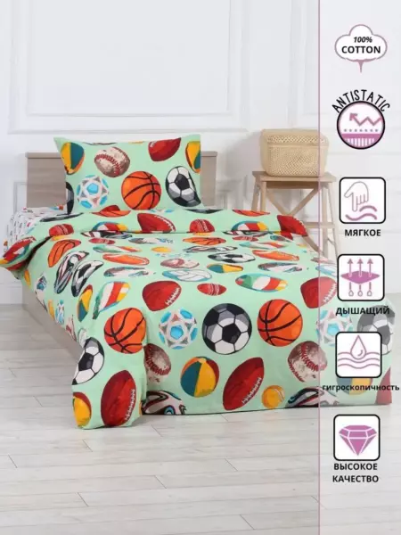 501038 КПБ 1,5сп "Мячи" н(1) 50*70 бязь бязь