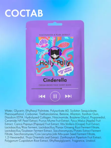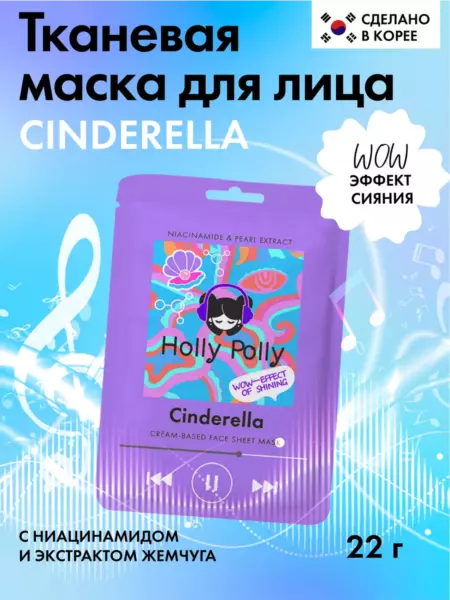 Тканевая маска для лица на кремовой основе «Holly Polly» Cinderella с Ниацинамидом и Экстрактом Жемчуга (Wow-Эффект Сияния)