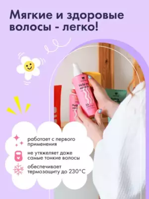 Имеет приятный фруктовый аромат и не утяжеляет даже самые тонкие волосы. Бережно помогает распутыванию непослушных прядей и против пушистости, облегчает расчесывание и укладку. Способен защитить секущиеся концы и цвет после окрашивания. Спрей совмещает в себе действие укрепляющего бальзама и сыворотки — глубоко питает и разглаживает локоны. Его также можно наносить как термо защиту перед использованием фена и горячего стайлинга. Термоспрей предотвращает сухость, ломкость и сечение, также имеет антистатический эффект и препятствует электризации.