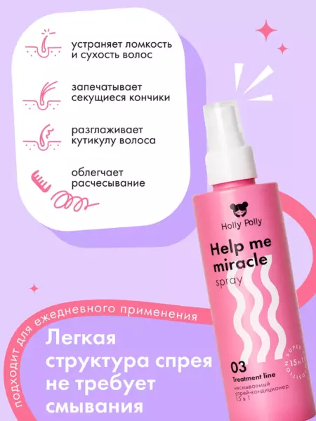 Несмываемый спрей-кондиционер Holly Polly 15в1 Help me miracle spray, 200 мл