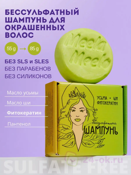 Предназначен для исключительно деликатного очищения и предупреждения пересушивания волос. Облегчает расчесывание, придает волосам гладкость и блеск. Средство не содержит сульфатов и мыла, а только мягкие ПАВы: кокоил изотионат натрия и кокамидпропилбетаин, полученные из жирных кислот кокосового масла. Натуральные масло усьмы питает волосы, освежает темные и каштановые оттенки, фитокератин увлажняет и обволакивает волосы по всей длине, делает их более гибкими и послушными, масло ши питает волосы и кожу головы, препятствует пересушиванию. Нежный аромат доставит удовольствие при уходе за волосами.