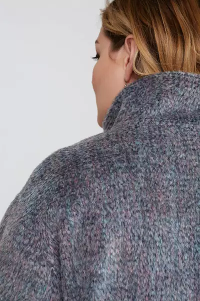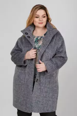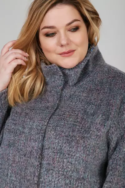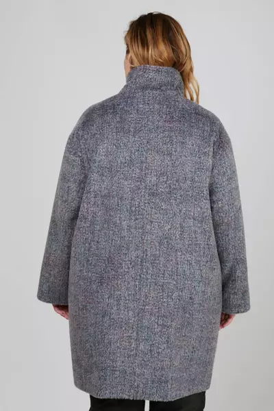 Полупальто из фактурной меланжевой ткани с длинным ворсом силуэта кокон. Рукав втачной длинный. По горловине притачная стойка. Застежка потайные пришивные кнопки. На полочке накладные карманы. Пальто на подкладке. Ткань верха: Шерсть 30%,Полиэстер 70%,Подкладка:,Полиэстер 55%,Вискоза 45%.