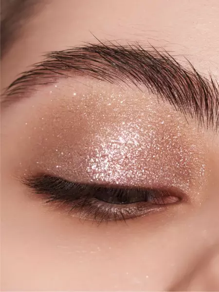 Прежде всего необходимо воспользоваться липкой базой для пигментов или глиттеров, иначе продукт будет осыпаться и не продержится до конца дня. Мелкодисперсные пигменты можно использовать без базы, как тени. Для нанесения подойдет плоская кисть среднего или маленького размера, например, Е04, Е05 или Е07.