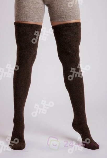 Теплые чулки из монгольской шерсти темно-коричневые