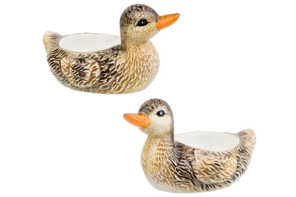 Набор 2 подставок для яиц «Уточки» предназначен для эстетичной сервировки стола. Размер каждого изделия – 10х6х6 см, объём – 15 мл. Пёстрые уточки выполнены из керамики. Ёмкости в виде животных позволят красиво хранить яички. Сделайте фигурки частью тематической сервировки стола, красиво подайте на стол куриные яйца. Добавьте вашей кухне атмосферу маленького чуда. Не рекомендуется применять абразивные моющие средства. Нельзя использовать в микроволновой печи и посудомоечной машине. Поставляется в стильной картонной коробке – благодаря ей вам не потребуется дополнительная подарочная упаковка. В коллекции бренда Elan Gallery вы найдёте большой выбор декоративной посуды и сувениров – каждый обязательно подберёт вариант на свой вкус. Изделия станут чудесным подарком для родных, близких и коллег. Наполните пространство вокруг себя уютом и эстетикой!