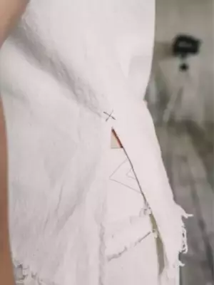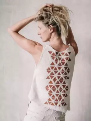 Летний хлопковый топ с геометрическим принтом и асимметричным скошенным нижним краем.Выполнен из необработанного хлопка ручной работы.Материал очень мягкий, приятный коже, максимально комфортен для летней жары