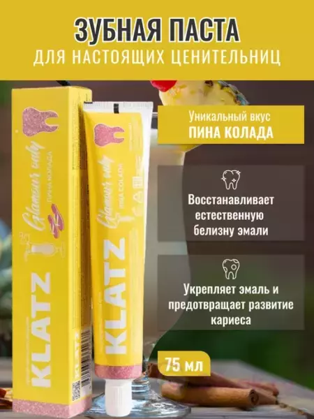 КЛАЦ Зубная паста для девушек Klatz GLAMOUR ONLY Пина колада 75мл