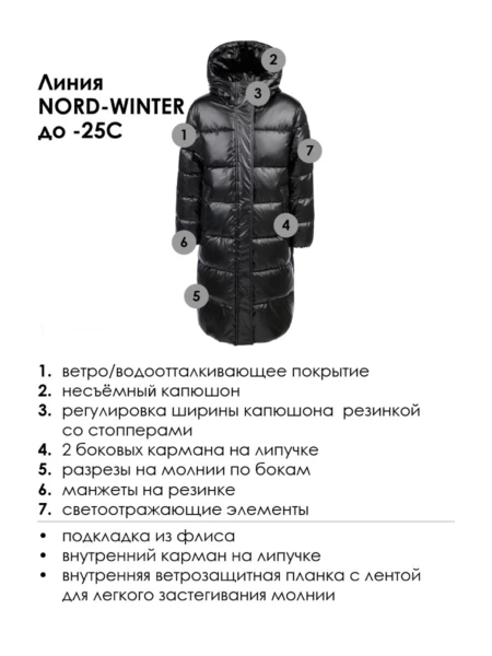 Зимнее пальто для девочки подростка. Температурный режим до -25°С*. Линия Nord - высокая степень теплозащиты для сильных холодов. Модная подростковая куртка с ветрозащитным и водоотталкивающим покрытием. Молния с двойным ходом. Комбинированная подкладка из флиса и таффеты. Несъемный капюшон, регулируемый шнурком. Внутренняя и внешняя ветрозащитные планки. Внутренняя утяжка по поясу. Эластичный манжет по низу рукава. Два кармана на липучке. Боковые разрезы на молнии. Светоотражающие элементы.