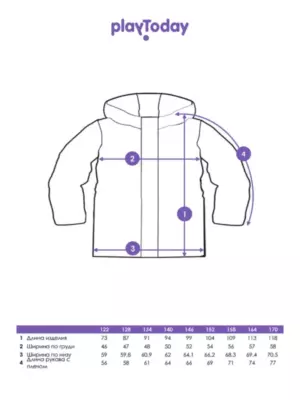 *Пожалуйста, обратите внимание, что указанный температурный режим является приблизительным и зависит от многих факторов, таких как возраст, физическое состояние, уровень активности ребенка и количество слоев одежды. Время, проведенное на открытом воздухе, и погодные условия, такие как холодный ветер, могут повлиять на тепловые характеристики изделия. Убедитесь, что защищены от холода голова, руки и ноги.