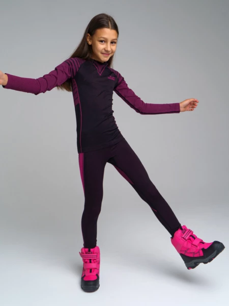 Термокомплект трикот. для девочек: фуфайка (футболка) с длин. рук, брюки для эпизод. использования