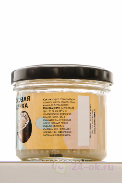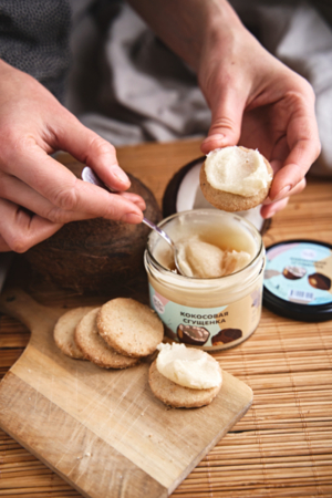 Состав: кокосовое масло 5%, кокоса мякоть 35%, топинамбура сироп 60%