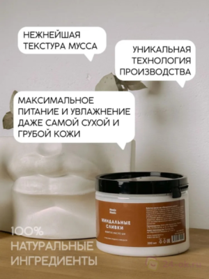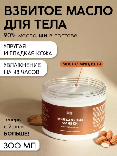 Взбитое масло для тела «Миндальные сливки» - идеальное средство для ухода за кожей, произведенное на основе ценного масла ши (каритэ), оно обеспечивает интенсивное питание, увлажнение и защиту. Его воздушная текстура и тонкий аромат миндаля превращают использование в истинное наслаждение.