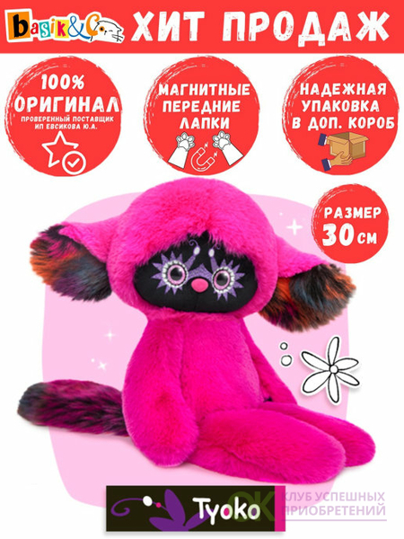 Мягкая игрушка Лемур Тёко (фуксия), 30см