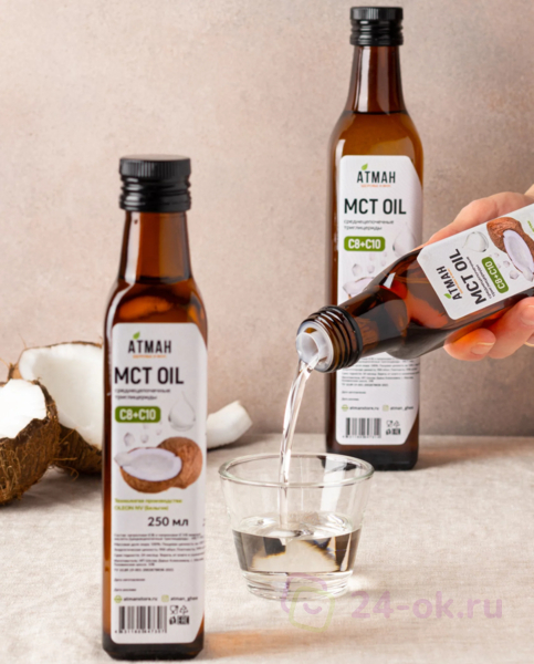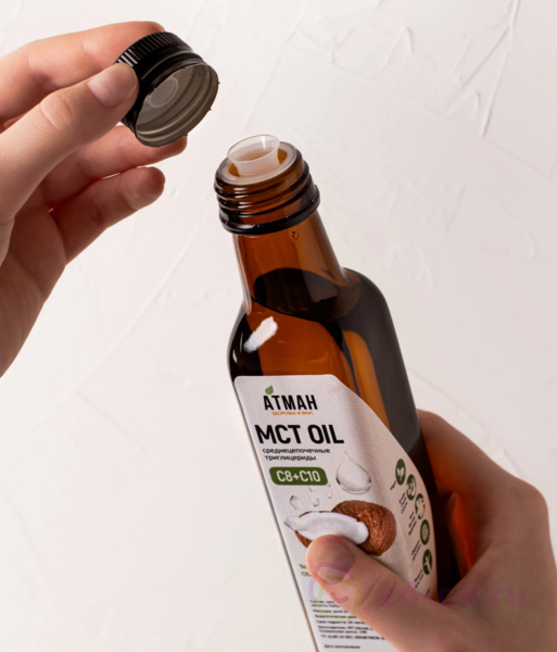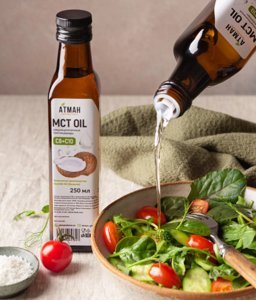 МCT OIL от АТМАН — это среднецепочечные триглицериды (MCT — Medium chain triglycerides) — правильные и полезные жиры, сжигаемые организмом для получения энергии. Оно усваивается гораздо эффективнее других жиров, поэтому практически не откладывается в организме в виде жировой ткани. При усвоении масло МСТ сразу преобразуется в энергию.